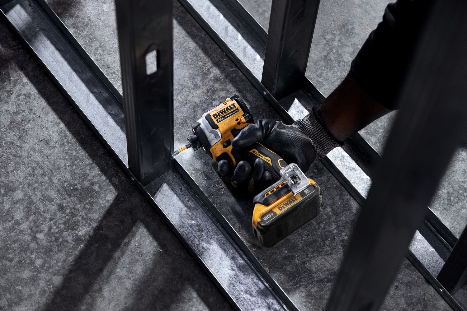 Afronte trabajos difíciles y maniobra en espacios pequeños con el Atornillador de Impacto ATOMIC 20V MAX* de 3 Velocidades de 1/4" (6.4mm) el Atornillador de Impacto Compacto de 20V MAX* DCF7871 Con menos de 4" (102 mm) de frente a atrás, este Atornillador de Impacto cuenta con 1,825 pulg-lb (205 Nm) de torque máximo y 3,250 rpm para atornillar tornillos grandes. Batería y Cargador se Venden por Separado